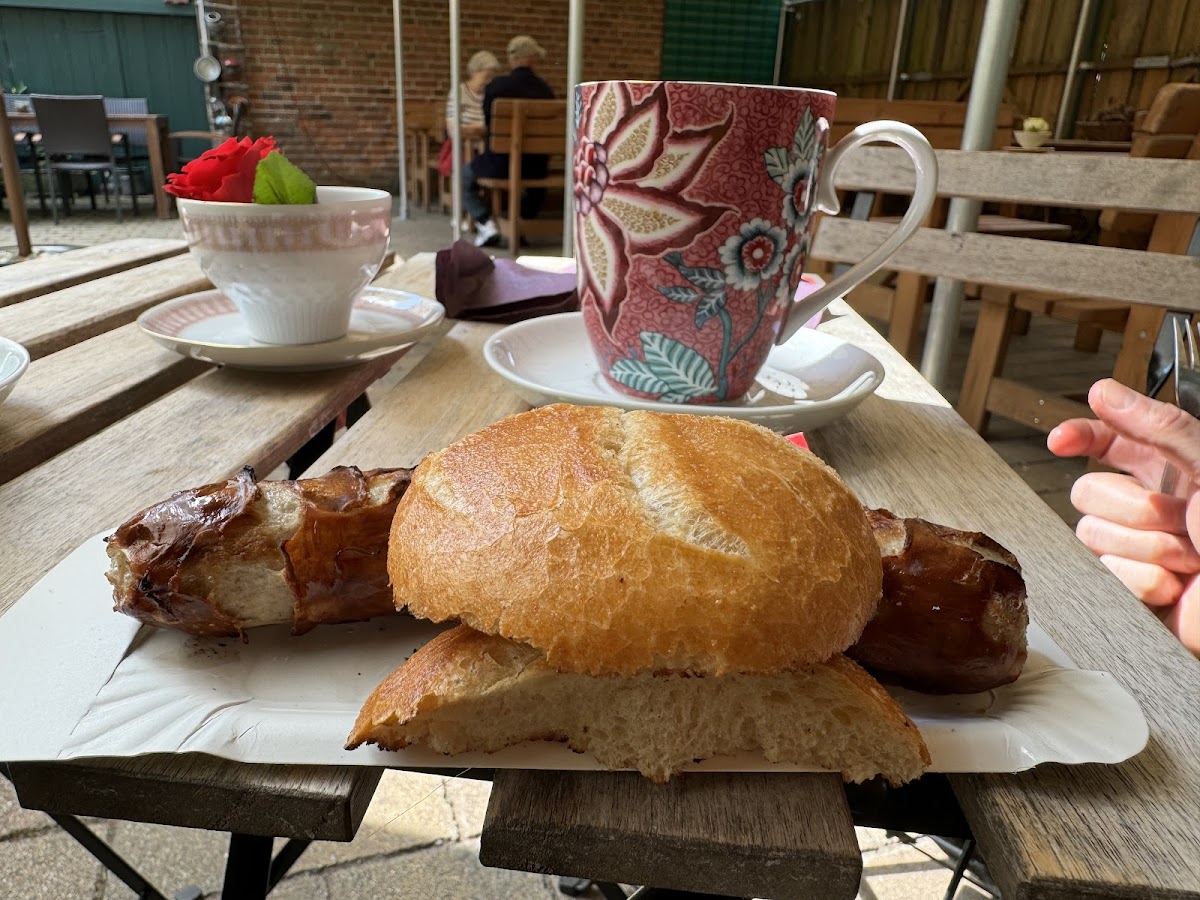 On warmer days, the garden setting really comes alive as groups and families spread out across the green, while quieter tables provide a calm retreat for those who want to read or chat without rush. The occasional scent of freshly grilled bratwurst drifting from the grill adds an unexpected savory option, gently expanding the usual café offerings. It’s precisely this mix of garden charm, diverse seating, and simple food that makes it popular among locals and walkers alike.